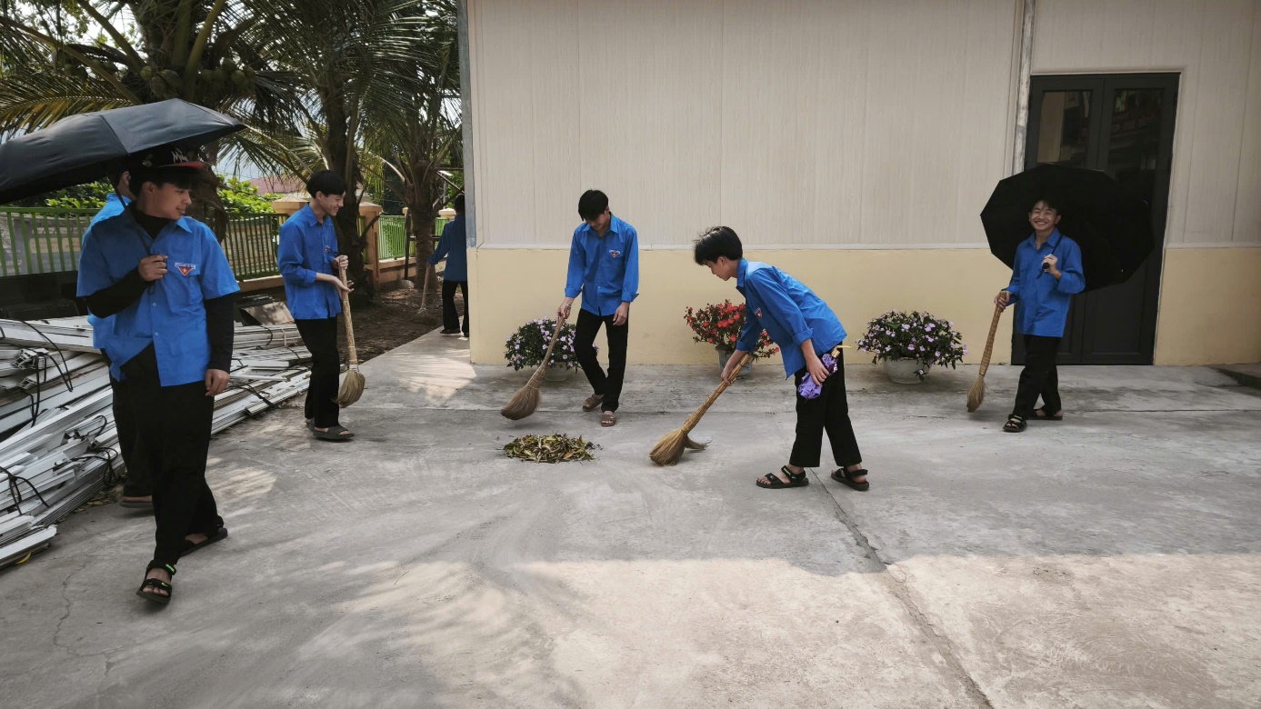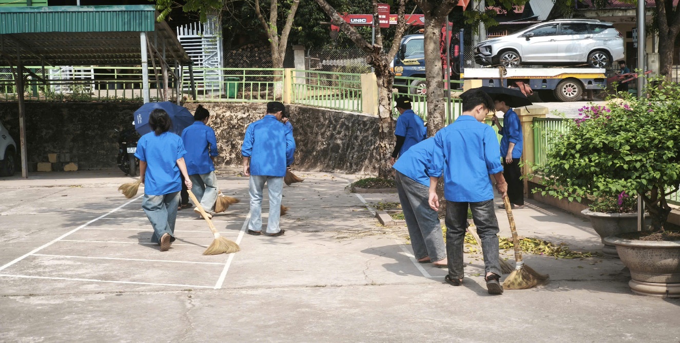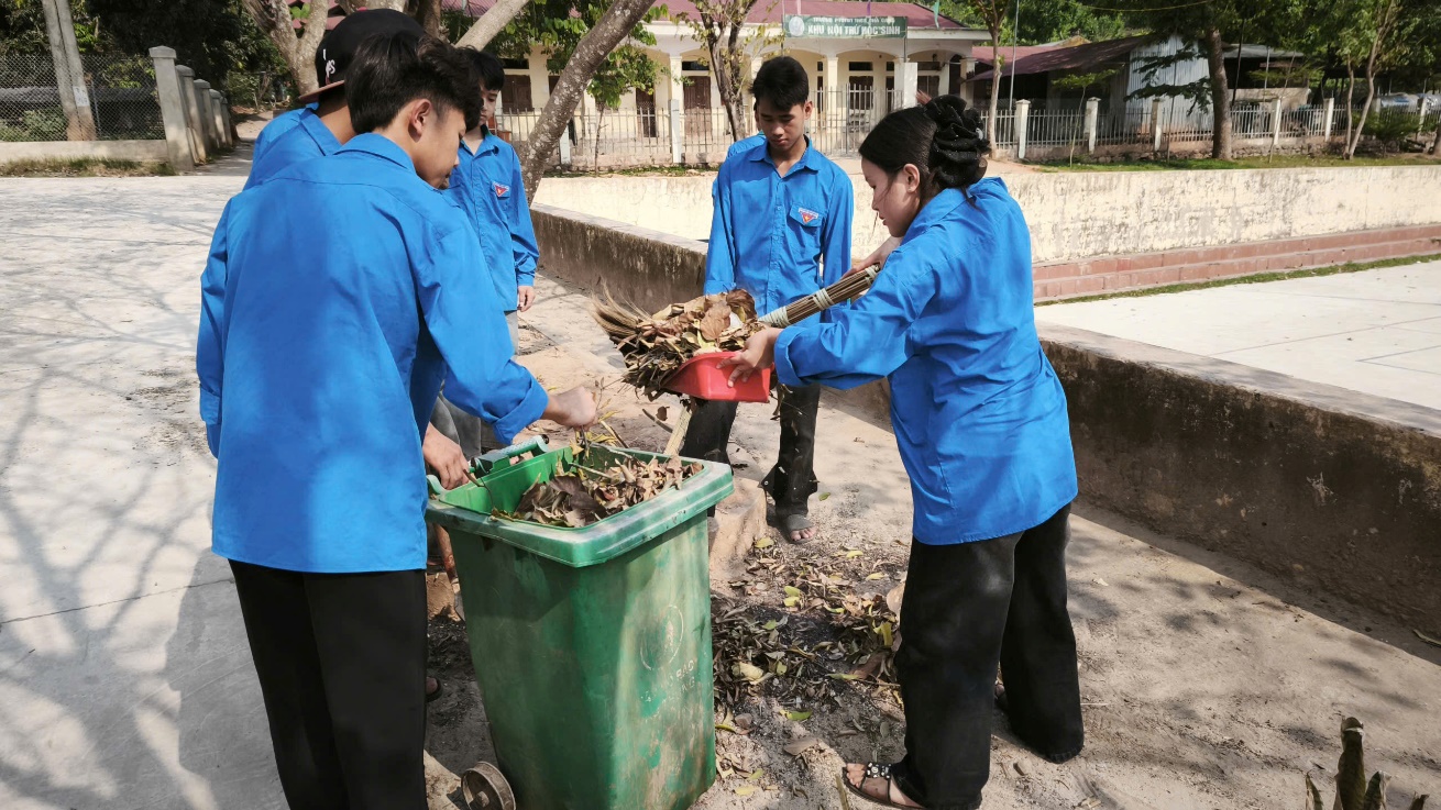 Ngay từ đầu giờ chiều, đông đảo đoàn viên, thanh niên đã có mặt đầy đủ với tinh thần hào hứng, phấn khởi. Mỗi người mang theo những dụng cụ quen thuộc như chổi, xẻng, liềm, bao tải… sẵn sàng bắt tay vào công việc. Dưới sự phân công cụ thể của Ban Chấp hành Đoàn trường, các nhóm nhanh chóng triển khai nhiệm vụ: người quét dọn rác thải, người phát quang bụi rậm, người thu gom và vận chuyển rác đến nơi quy định. Dù thời tiết có phần nắng nóng, nhưng không ai nề hà, tất cả đều làm việc với tinh thần trách nhiệm cao và sự nhiệt huyết của tuổi trẻ.