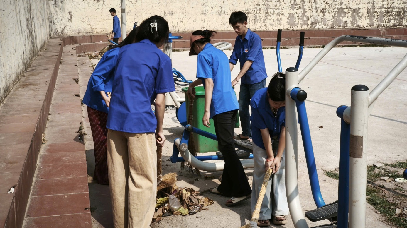 Không khí lao động diễn ra sôi nổi, khẩn trương nhưng cũng không kém phần vui tươi. Những giọt mồ hôi rơi xuống nhưng đổi lại là những nụ cười rạng rỡ khi từng góc sân, từng lối đi dần trở nên sạch sẽ, gọn gàng hơn. Hình ảnh các đoàn viên áo xanh miệt mài lao động đã tạo nên một bức tranh đẹp, lan tỏa tinh thần tích cực đến người dân xung quanh. Nhiều người dân khi chứng kiến hoạt động cũng bày tỏ sự ủng hộ, đồng tình và ý thức hơn trong việc giữ gìn vệ sinh môi trường chung.