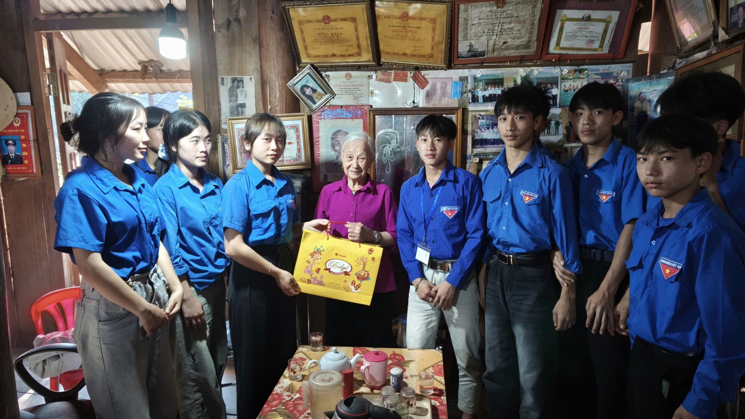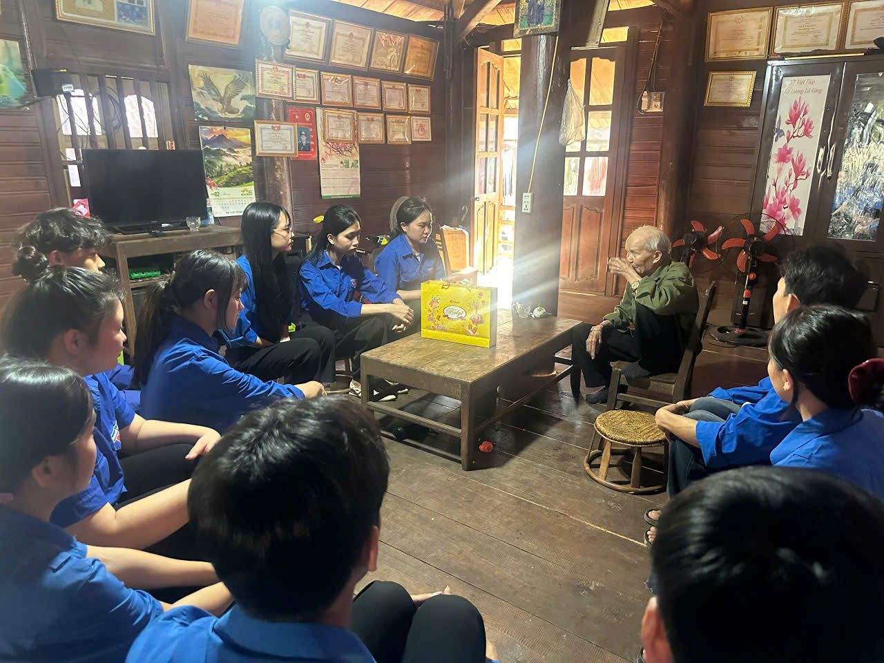 Tiếp nối chuỗi hoạt động tri ân, các nhóm tình nguyện đã đến thăm hỏi các gia đình thương binh, người có công với cách mạng và các cựu chiến binh trên địa bàn. Không chỉ mang theo những phần quà Tết ấm áp nghĩa tình, đoàn viên thanh niên và giáo viên còn ân cần thăm hỏi sức khỏe, lắng nghe các cựu chiến binh kể lại những câu chuyện, hồi ức về một thời khói lửa. Qua giọng kể trầm lắng, đôi khi ánh lên niềm tự hào, hình ảnh về những năm tháng chiến đấu gian khổ nhưng đầy lý tưởng hiện lên chân thực và xúc động. Những câu chuyện ấy không chỉ giúp thế hệ trẻ hiểu hơn về lịch sử, mà còn bồi đắp lòng yêu nước, niềm tự hào dân tộc và ý thức trách nhiệm trong học tập, rèn luyện hôm nay.